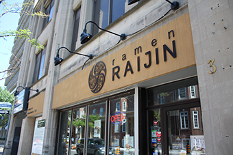 日本食レストランのざっ串グループが運営するラーメン店が雷神です。店内は広々としていて開放的!恐れ多く(?)も雷神様を目の前にして、ラーメンやつけ麺を食べることもできます。今回、LifeTorontoスタッフが頼んだのは、人気No.1の「魚介豚骨醤油ラーメン」と「餃子」!