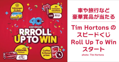 Tim Hortonsのスピードくじ「Roll Up To Win」!車や旅行など豪華賞品が当たる