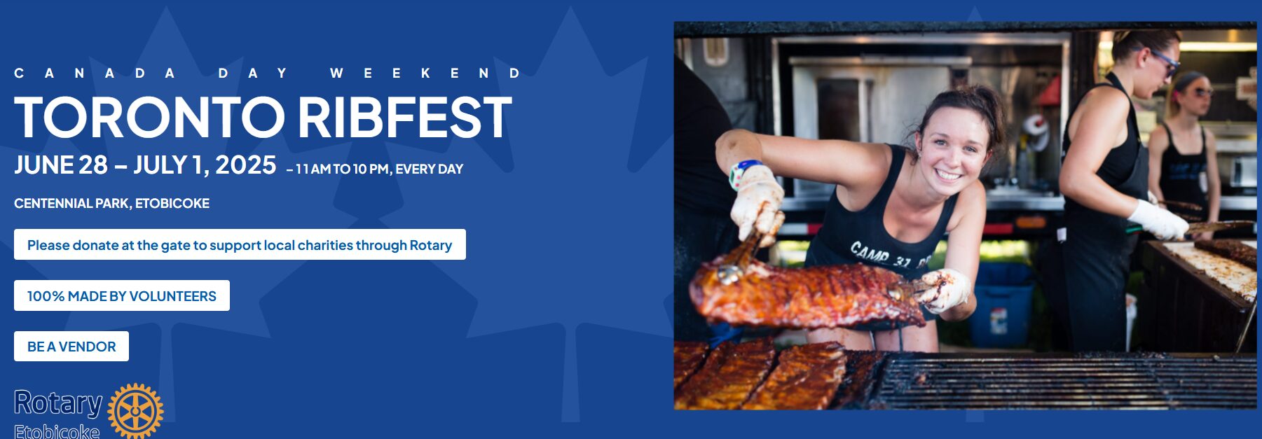 また、6月28日~7月1日には、Toronto Rib Fest もCentennial Parkで11am – 10pm まで開催されます。入場は地域社会への支援として5ドルのドネーションが求められています。花火が打ちあがるまでの間、ライブミュージックやジューシーなお肉を楽しんでみてはいかがでしょうか?
