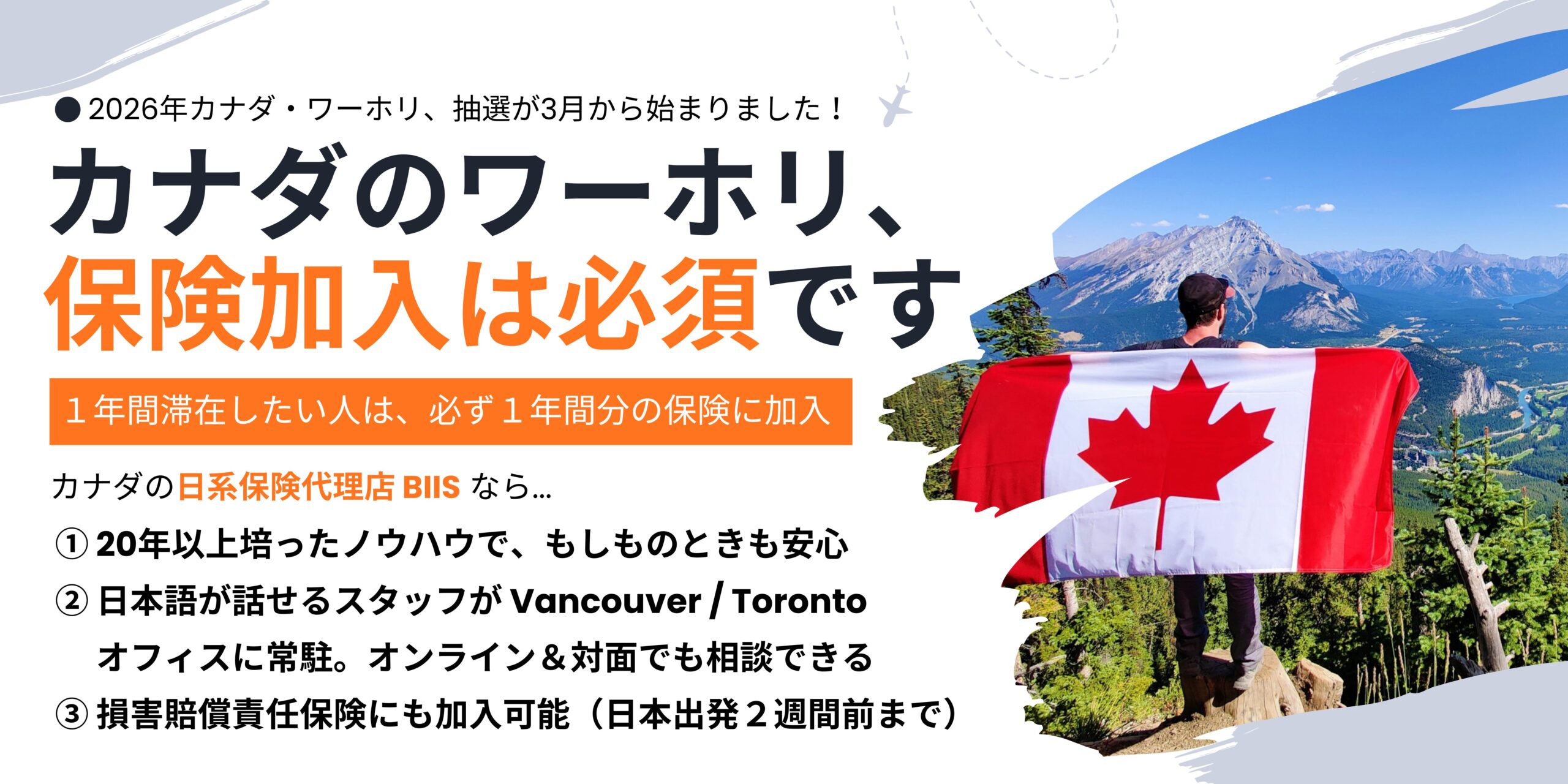 そこで今回は、LifeTorontoスタッフもお世話になっている保険代理店「ブリッジス・インターナショナル保険事務所(BIIS)」さんの保険を3種類ご紹介します。ビジタービザやワーホリ、学生ビザでカナダにこれから来るという方は必見です。