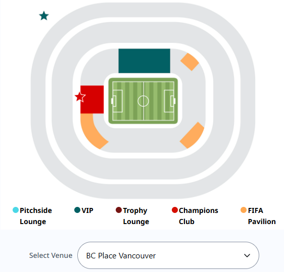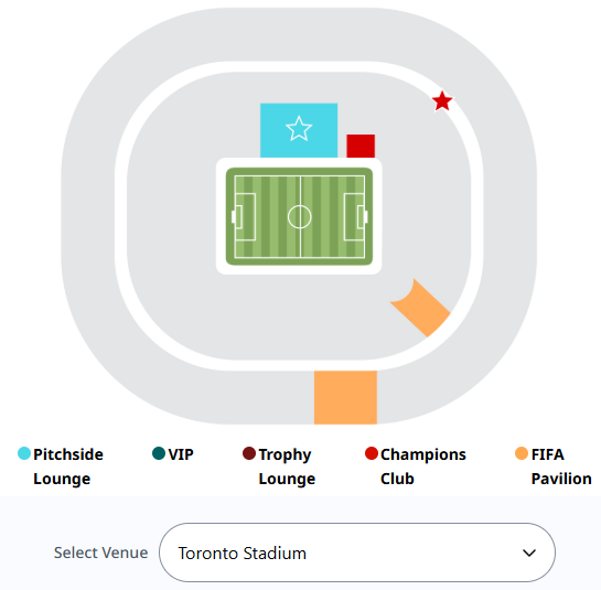 - ホスピタリティオプション:ピッチサイドラウンジ、VIPラウンジ、トロフィーラウンジ、チャンピオンズクラブ、FIFAパビリオン