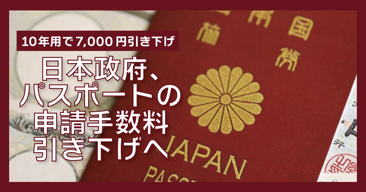 日本政府は、日本のパスポート(一般旅券)の申請手数料を見直す方針を示し、10年用パスポートの大幅な値下げに加え、5年用パスポートについては18歳未満を一律で約4,500円とする方向で調整に入ったことが分かりました。