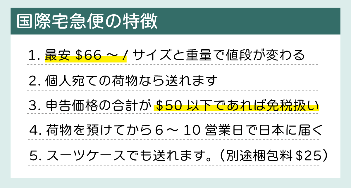 【最安 $66~】一般的な荷物発送に最適「国際宅急便」