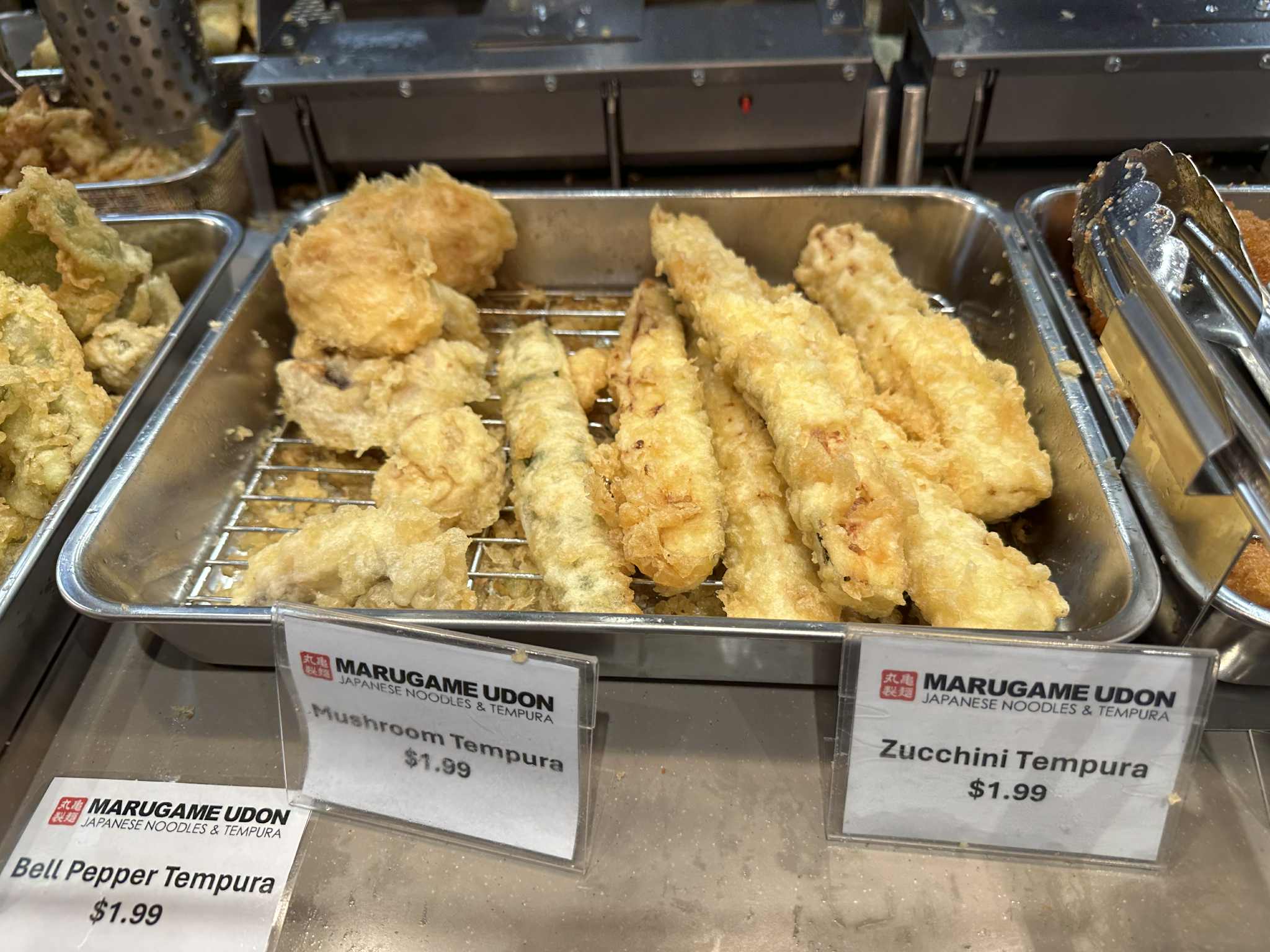 また、天ぷらも豊富で、海老天 $1.99、かきあげ $3.49、餃子天ぷら $1.99、 いか天 $2.99、ズッキーニ天 $1.99などが並んでいたようです。