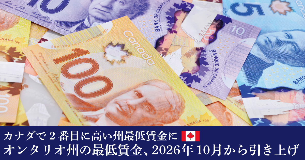 オンタリオ州政府は、労働者保護と競争力強化のため、2026年10月1日より最低賃金を引き上げます。これにより、州内の70万人以上の労働者が恩恵を受けることになります。一般最低賃金で週40時間働く労働者は、年間約728ドルの賃金増加が見込まれます。