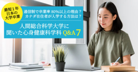 カナダなど海外にいながら日本の学位が取得できる人間総合科学大学の心身健康科学科について紹介してきました。日本の大学の学位が取得できるので、現在はカナダに滞在しているけど、将来日本に帰って就職活動を行う予定の人にも良さそうですよね。